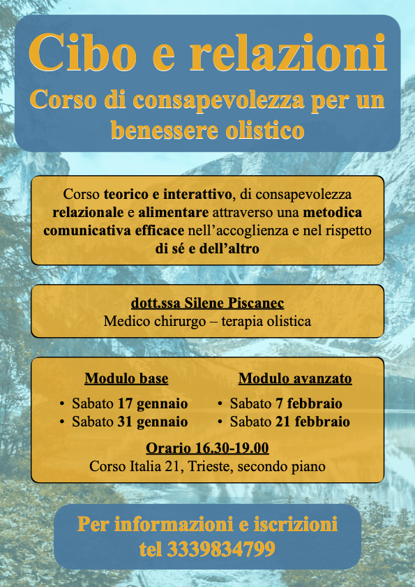 Anche quest′anno terrò il corso sul benessere olistico: Cibo e relazioni. Il percorso si basa sulla P.N.E.I e sulla stretta correlazione fra le emozioni che nascono dalle nostre relazioni, il nostro c...